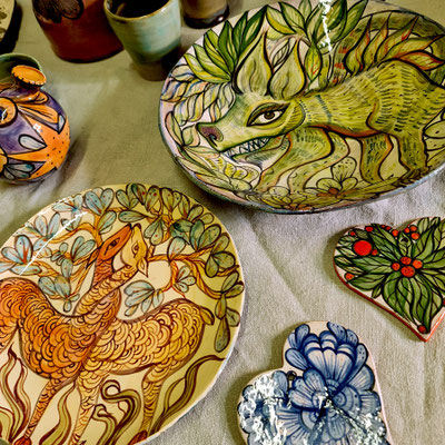 Über das lange Pfingstwochenende werden die Frauen, die mit ihren Töpferarbeiten über die