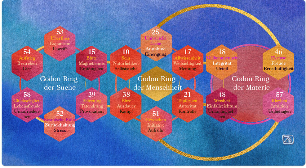 Die tiefere Bedeutung, kann sich mir offenbaren, wenn ich meine Genschlüssel durch diese Codon Ringe näher betrachte.